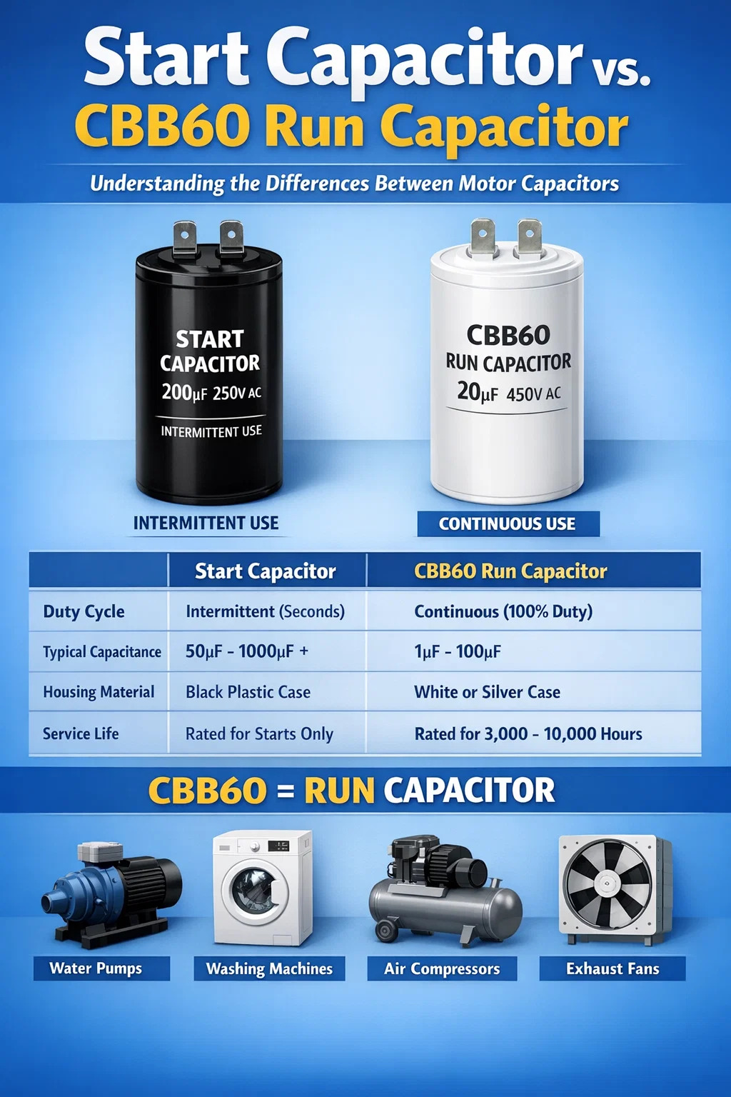 Diferențe funcționale: condensator de pornire față de condensatorul de rulare CBB60